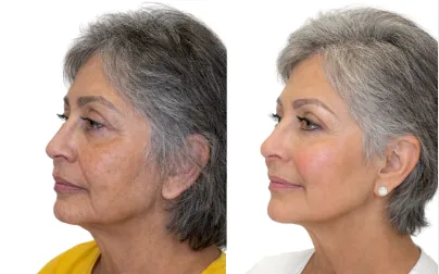 It is designed to create a slimmer, more defined jawline. It works to eliminate fat while also tightening sagging skin on the neck.